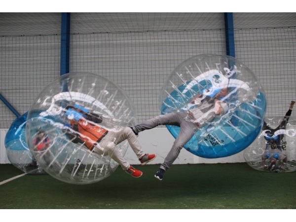 Au préalable il faut constituer 2 équipes, 4 contre 4 ou 5 contre 5 ou plus, la seule limite est de pouvoir se déplacer sur le terrain vu le volume des bulles J . Chaque équipe doit définir une chorégraphie devant être faite à chaque but marqué, appelée « célébration de but ». Ensuite, chaque joueur « enfile » une bulle qui le protège de la tête aux genoux et se prépare au contactâ?¦ avec un peu d´appréhension mais toujours avec le sourire. Est-il utile de préciser qu´il est interdit de s´équiper d´une pointe pour crever le ballon de l´adversaire ? Go, éclatez-vous, l´arbitre lance le début de la partie et l´équipe vainqueur sera celle qui marquera le plus de buts que son adversaire.