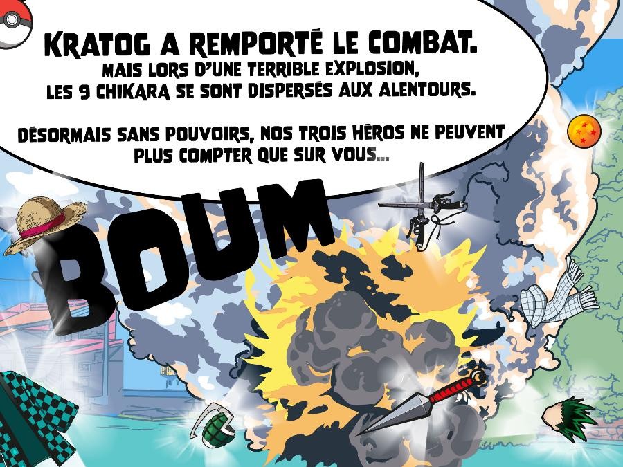 Cette aventure plonge les enfants dans le monde des supers héros des Mangas, à l'aide d'une tablette, par équipe de 4, les joueurs doivent retrouver les pouvoirs éparpillés tout au long du parcours !!!