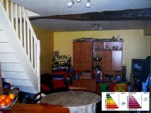 Maison de ville comprenant entrée, cuisine ouverte sur séjour. A l'étage 2 chambres, salle de bains. Idéal première acquisition. Réf : 216