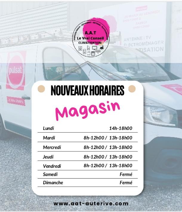 Pour mieux vous accompagner au quotidien, A.A.T à Auterive vous accueille au 106, route de Toulouse selon les horaires suivants : le lundi après-midi de 14h00 à 18h00, et du mardi au vendredi de 9h00 à 12h00 et de 13h00 à 18h00. Ces créneaux vous offrent la flexibilité nécessaire pour venir découvrir notre sélection de produits, poser vos questions ou déposer un appareil à réparer.