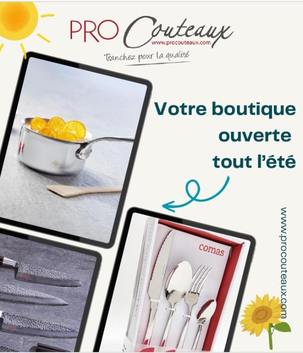 À Auterive, les passionnés de cuisine, professionnels comme amateurs, peuvent compter sur Procouteaux tout l’été ! La boutique spécialisée en couteaux japonais et occidentaux, en ustensiles et en vêtements de cuisine reste ouverte aux horaires habituels, pour vous permettre de vous équiper ou de compléter votre matériel même pendant la période estivale.