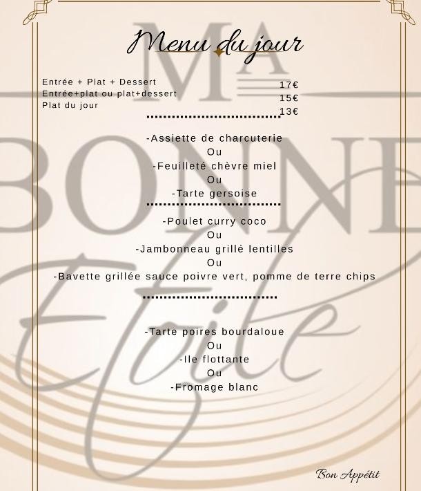 L'équipe de Ma bonne étoile vous présente le menu du jour.