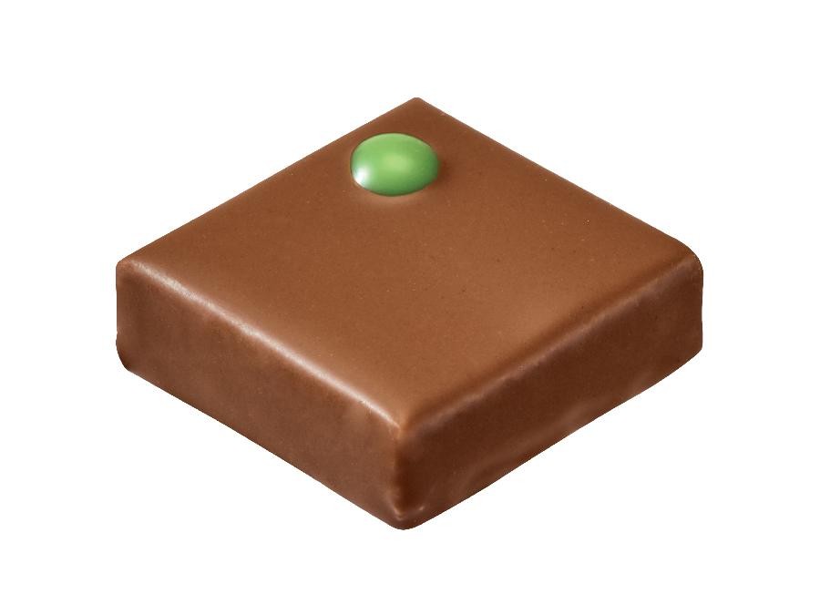 - Chocolat au lait 40% de cacao (sucre, pâte de cacao, beurre de cacao, poudre de lait entier, poudre de lait écrémé, émulsifiant lécithine de soja <1%, arôme naturel de vanille <1%)