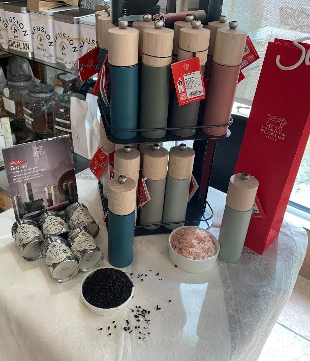 Grains des saveurs vous propose une nouveauté. Les Moulins à poivre et sel de la marque Peugeot. Collection Boréal . Différents coloris. Soit Poivre , soit sel . Manuel ou électrique.