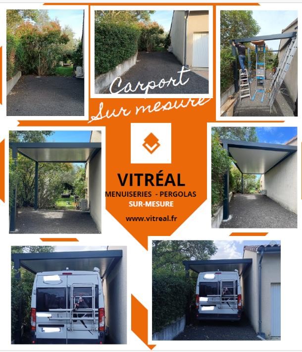 Réalisation récente dans le secteur d’Auterive : Vitréal a installé un carport aluminium sur mesure parfaitement adapté aux dimensions d’un camping-car. Cette structure élégante et résistante permet de protéger efficacement les véhicules tout en valorisant l’esthétique de votre extérieur.