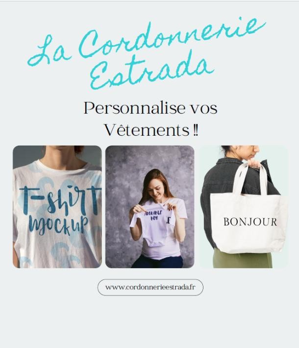 À Balma, la Cordonnerie Estrada ne se limite pas à la cordonnerie traditionnelle. Nous vous offrons un service exceptionnel d'impression sur vêtements et tout support tissu plat, comme les sacs, sweats, hoodies, et tee-shirts, bodies etc... Que vous souhaitiez personnaliser des vêtements pour un événement spécial ou pour un usage quotidien, notre expertise vous permet de créer des pièces uniques qui reflètent votre style.