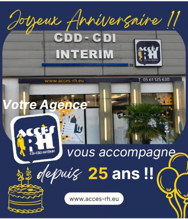 Depuis un quart de siècle, Accès RH s'engage au service des entreprises et des talents en recherche d'opportunités professionnelles. Fondée à Balma, cette agence d’intérim de proximité a su construire une relation de confiance durable avec ses partenaires et ses intérimaires. Le 18 septembre 2025, elle célébrera fièrement ses 25 ans d’existence, une occasion unique de mettre en lumière son parcours, son expertise et les femmes et hommes qui ont contribué à cette belle réussite.