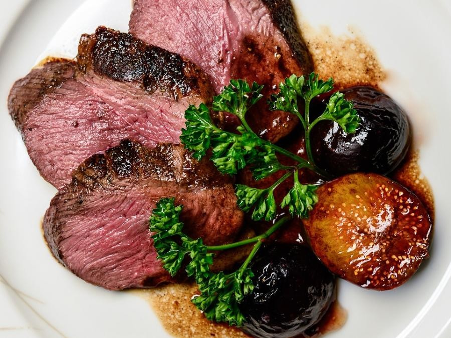 Filet de bœuf sauce aux truffes ou magret de canard sauce pêche et miel ou poisson selon arrivage