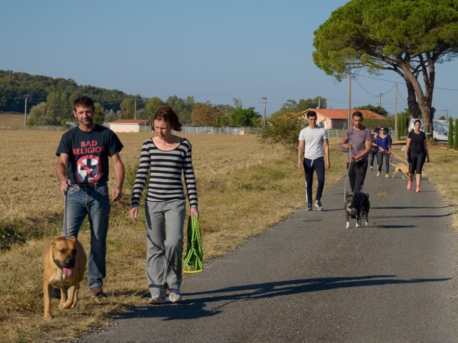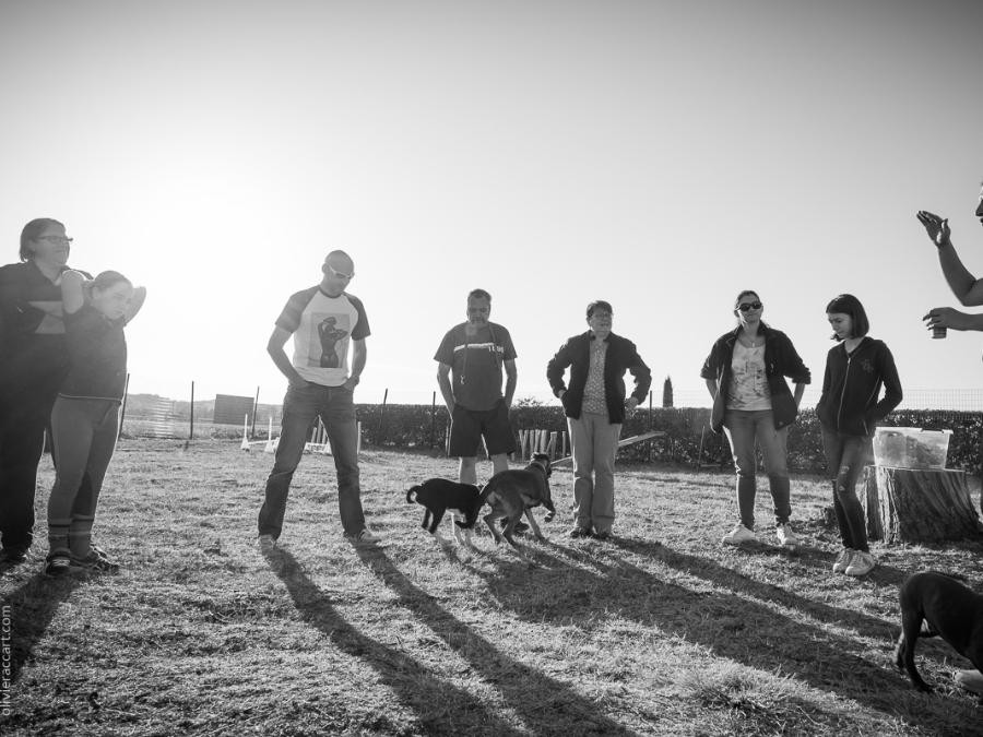 Les cours se déroulent en deux groupes de 5 chiens maximum, afin que je puisse être disponible pour chaque binôme Maitre-chien tout en bénéficiant des avantages du travail de groupe.