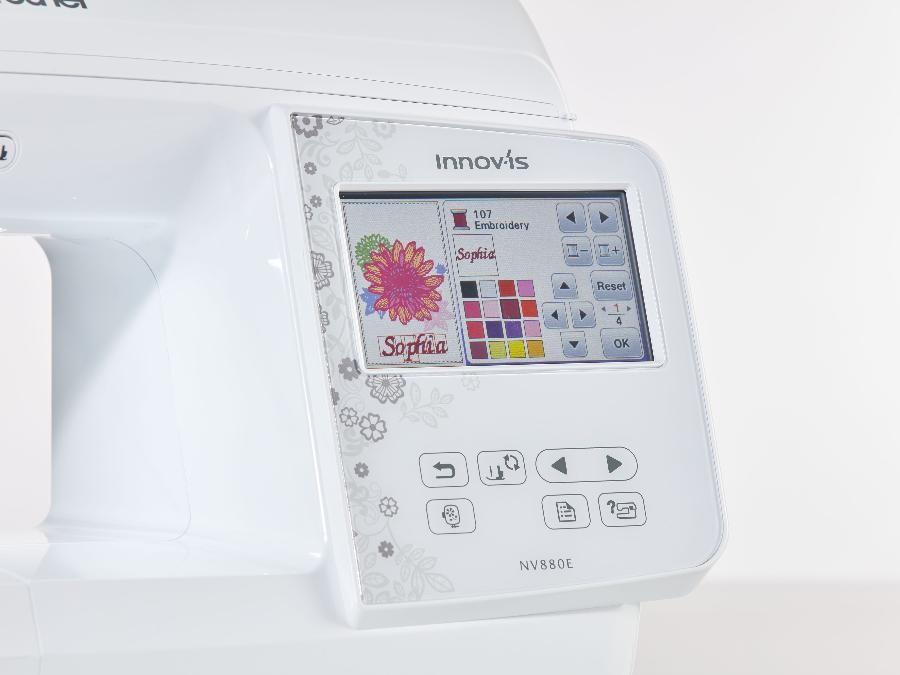 138 motifs de broderie intégrés, 11 alphabets et 10 formes d'encadrement avec 14 styles de bordure,