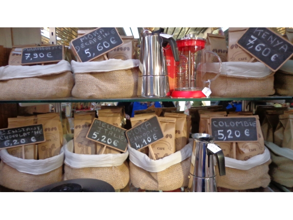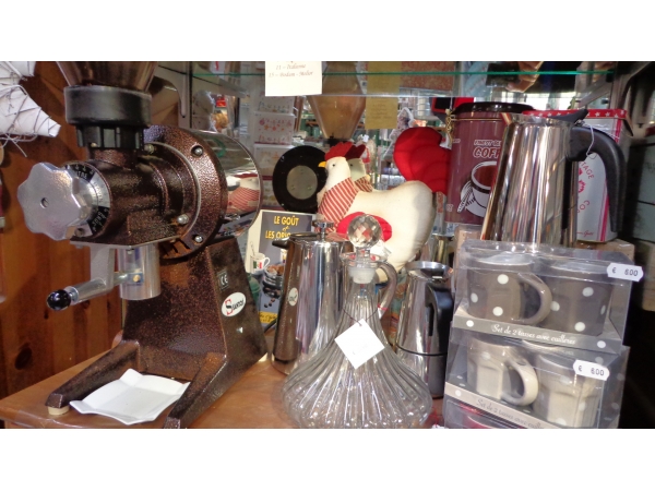 Grand choix de cafés provenant du monde entier. Le café torréfié chaque semaine sera moulu sur place selon votre cafetière ( du café turc à la cafetière à piston...). Nous vous proposons : un mélange italien riche en goèt, un peu corsé. un café de Colombie doux et légèrement parfumé, un moka d'Ethyopie : pur arabica au corps généreux, très aromatique. un maragogype, café au très gros grains réputé pour sa douceur et son caractère velouté. Un Kenya, café d'exception, aromatique, légèrement acidulé. Notre mélange de 5 arabicas, très parfumé, convient à toutes les cafetières. Un moka décaféiné sans solvant. Très parfumé.