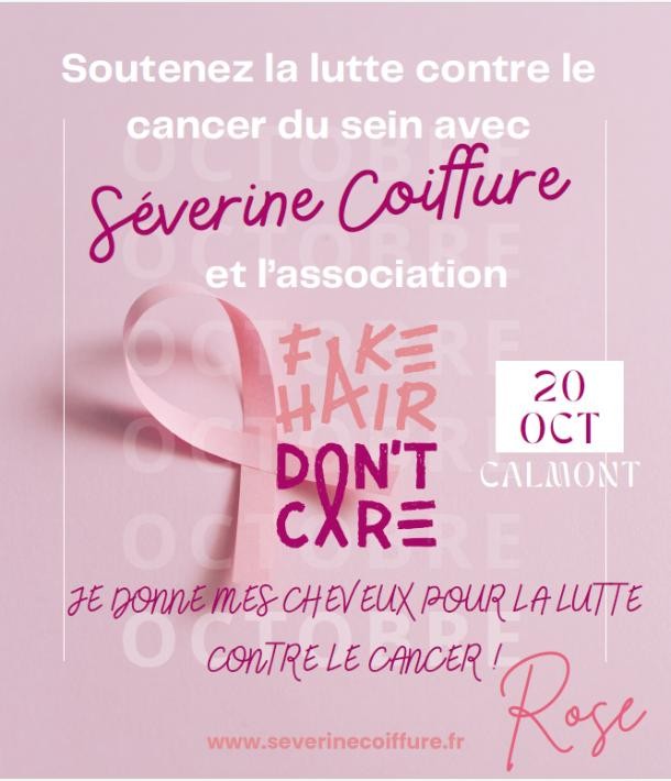Le dimanche 20 octobre, rejoignez-nous sous la Halle de Calmont pour un événement solidaire organisé par la ville de Calmont. Séverine Coiffure, en tant que spécialiste de la coiffure à domicile et prothésiste capillaire, Séverine vous invite à participer à une belle initiative : le don de cheveux au profit de l'association Fake Hair Don't Care.