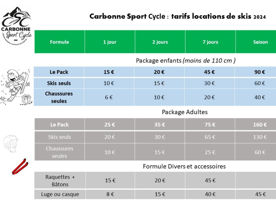 Profitez pleinement de la saison hivernale avec notre service de location et d'entretien de skis de piste et de raquettes chez Carbonne Sport Cycle, votre partenaire local en vente, entretien et réparation de tous types de cycles à Carbonne.