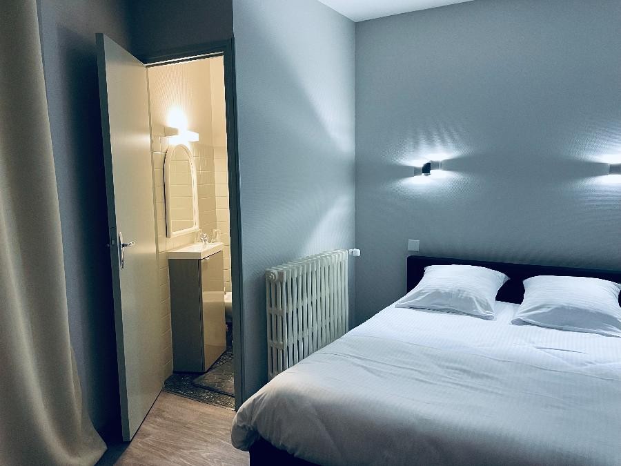 Notre chambre double, entièrement rénovée, vous accueille avec une literie neuve, une TV, un lavabo et un accès Wifi.