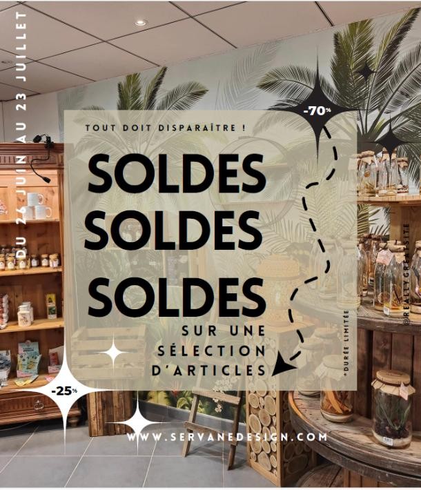 Venez profiter des soldes d'été chez Servane Concept Store à Carbonne ! Bénéficiez de remises exceptionnelles allant de 25 à 70 % sur une sélection d'articles. Que vous recherchiez des objets de décoration, des bijoux, des cadeaux personnalisables ou des produits artisanaux, vous trouverez forcément votre bonheur.