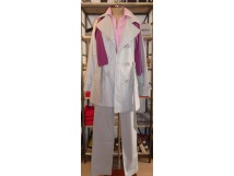 Trench Coat enduit, mélange de coton et de lin Gris perle lavable en machine (taille 1 à 5) Pull col V coton et soie, en différents coloris (taille S à XL) Chemisier en lin, coloris pétale de rose, et bleu aqua. (taille 36 à 48) Pantalon gris perle coton et élasthane (taille 36 à 46)
