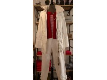 Parka imperméable respirant et couture thermosoudée, en coloris blanc et sable de la taille 1 à la taille 6. Veste col rond en laine, Royal Mer Bretagne, divers coloris sur commande. De la Taille 36 à 52. Débardeur rayé un 7/8ème coton élasthane blanc et indigo