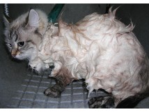 Pour les chats coopératifs et surtout n'ayant pas de problèmes cardiaques, nous procédons au lavage et séchage. Pour les autres nous appliquons un shampooing sec de très bonne qualité.