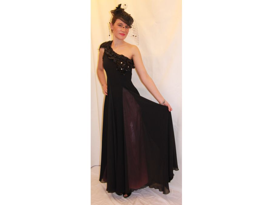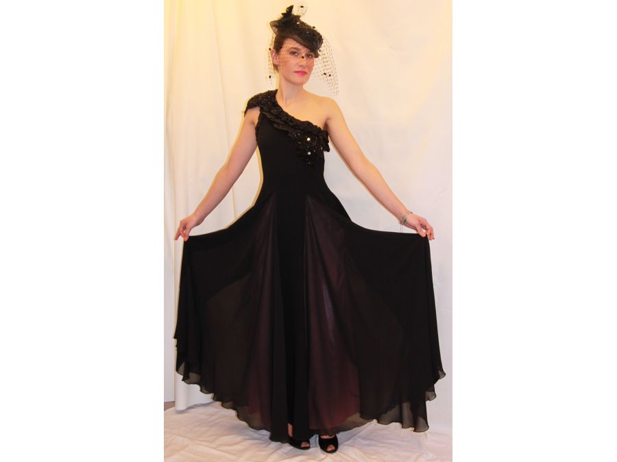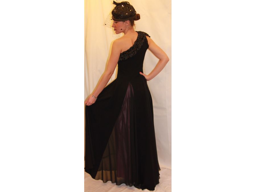 Robe de soirée Haute Couture, avec une épaule nue couleur noire, doublure couleur rose