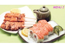 6 california royal saumon 4 brochettes saumon 1 soupe, 1 salade, 1 riz