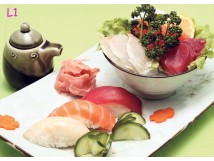9 sashimi assortis 3 sushi assortis 1 soupe, 1 salade, 1 riz