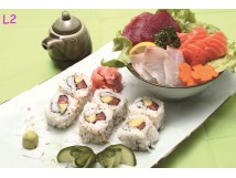 9 sashimi assortis 6 california saumon 1 soupe, 1 salade, 1 riz