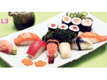 3 maki Thon, 3 maki saumon 6 sushi assortis 1 soupe, 1 salade, 1 riz