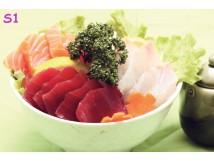 15 tranches de sashimi assortis 1 soupe, 1 salade, 1 riz