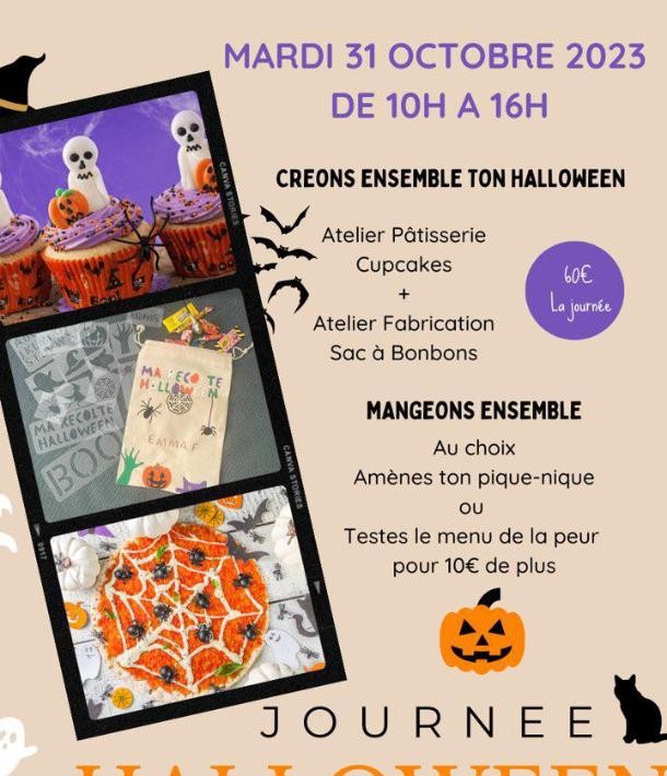 On vous a concocté un programme qui fait peur... mais de plaisir ! Rejoignez notre atelier pâtisserie pour créer des cupcakes monstrueusement délicieux, suivi d'une session créative où vous fabriquerez vos sacs à bonbons pour la récolte nocturne. (60 €)
