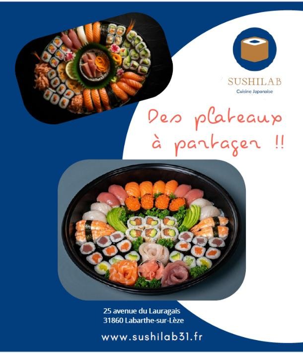 Envie de déguster des saveurs authentiques du Japon ? Sushilab, situé à Labarthe-sur-Lèze, vous propose une expérience culinaire unique avec ses plateaux composés de sushis, makis et sashimis, idéaux à partager entre amis ou en famille. Que vous choisissiez de savourer nos créations sur place, à emporter ou en livraison, chaque bouchée vous transporte directement au cœur de la gastronomie japonaise.