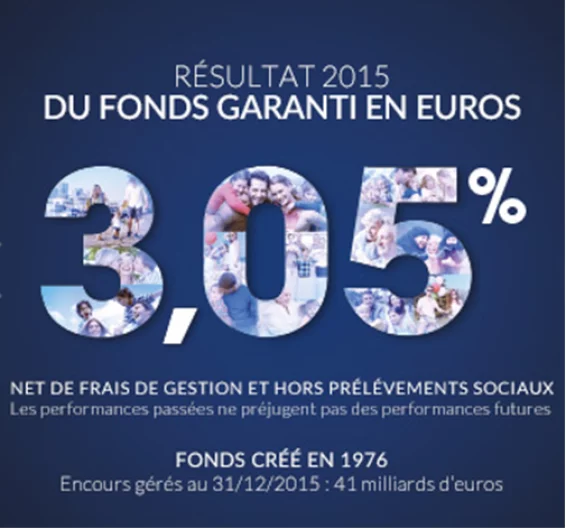 Découvrez le contrat collectif d'assurance vie AFER : les résultats 2016 de ses différents supports et ses avantages ! FONDS GARANTI EN EUROS : 2,65% net de frais de gestion et hors prélèvements sociaux Créé en 1976 - ACTIFS AU 31/12/2015 : 41 MILLIARDS D´EUROS Les performances passées ne préjugent pas des performances futures. Depuis 40 ans, le contrat d'assurance vie multisupport AFER bénéficie de l'expertise d´Aviva, une des premières et des plus solides sociétés d´assurances au monde. Les engagements pris envers les adhérents sont garantis par Aviva Vie et Aviva �?pargne Retraite (filiales à 100% d´Aviva) et la gestion financière des fonds AFER est confiée à Aviva Investors France figurant parmi les 10 premières en gestion