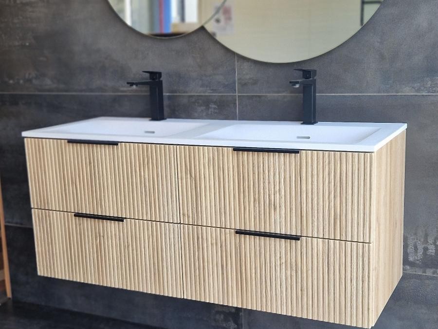 Sanitaire - Bain: Meuble de sdb, paroi de douche, receveur de douche, robinetterie et accessoires. Coté Casa à Lavaur (81).