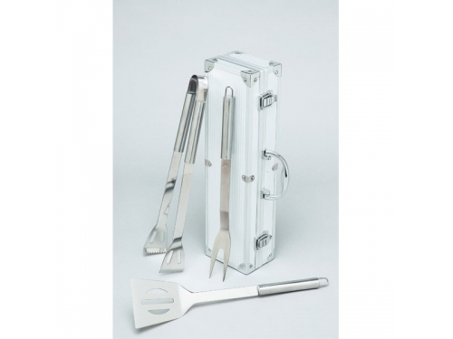 mallette barbecue 3 pièces inox mallette en inox avec ses ustensiles en inox également fourchette,palette et pince