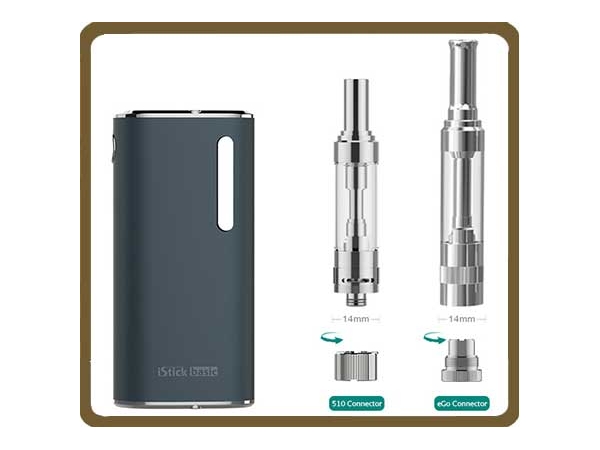 Box de 2300mAh incluant le nouvel atomiseur GS Air 2 fixé à l'iStick Basic par un système ingénieux de base aimantée le rendant amovible ! Le kit contient 2 bases magnétiques (510 et eGo) qui se visse à la base de l'atomiseur. En plus d'une grande autonomie, la box est simple d'utilisation et détecte automatiquement la valeur de la résistance installée. Configuration du Kit: 1 Box iStick Basic 1 Atomiseur GS Air 2 (2ml / diam: 14mm / Airflow réglable) 2 Têtes atomiseur GS 0.75 Ohm 2 Bases aimantées 510 et eGO 1 Câble USB 1 Manuel d'utilisation Ci-dessous la plage de puissance en fonction de la résistance utilisée (batterie pleine). 1.8 Ohm = 8.4 Watts 1.5 Ohm = 9.6 Watts 1.2 Ohm = 12 Watts 0.75 Ohm = 17 Watts