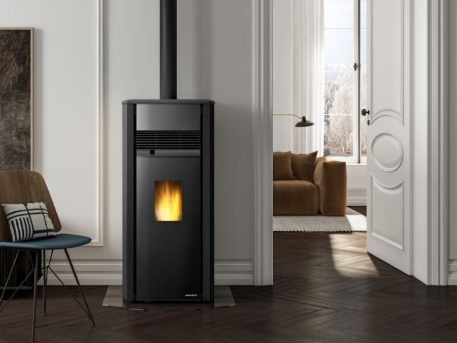 • poêle étanche prévu avec sortie des fumées sur le dessus avec tube coaxial