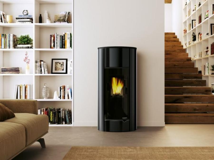 • poêle à forme elliptique avec revêtement en acier ou en verre
