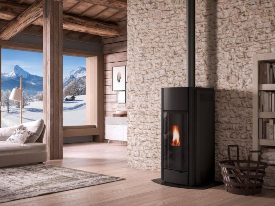 • poêle étanche prévu avec sortie des fumées sur le dessus avec tube coaxial
