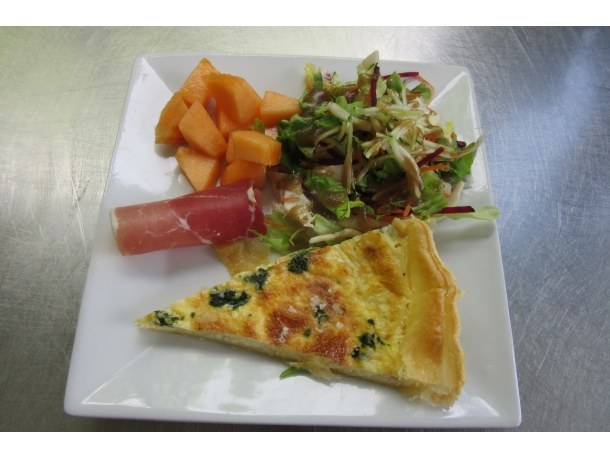 Entrée selon saison, quiche, jambon, melon, et salade pour l'été (Entrées soumises à changement durant la saison). Chez Tavernes d'Hautpoul, spécialités portugaises à Mazamet (81).