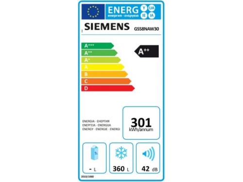 Congélateur armoire NoFrost 360 Litres Pouvoir de congélation: 22 kg/24h. Autonomie: 25h. 5 tiroirs + 3 abattants à congélation intensive+1balconnet+fabrique de glacon IceTwister amovible. FreshSense. Commande sensitive TouchControl. Eclairage LED. Ouverture EasyOpening. Alarmes visuel et sonore. Cons: 301 kWh/an. A++ Dim (LHP): 70 x 191 x 78 cm Produit proposer à 779 € sur facture (écopart incluse) - 80€ remboursé par SIEMENS pour un achat réalisé entre le 1er novembre et le 15 décembre 2016 = prix net de l'appareil à 699€ seulement (emporté).
