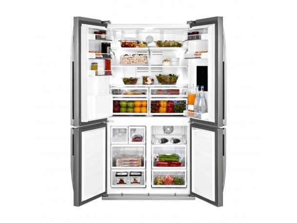 Réfrigérateur américain Description : 522 L (373 L + 149 L 4*). Clayettes verre. Compartiment 0°C. Mode Vacances. Fonction Eco. Ice Off fonction. Ecran digital tactile. Congél 4 tiroirs. Autonomie: 15h. Congélation: 13kg/24h. Distributeur d'eau fraîche. Conso: 351 kWh/an. DIM (LHP): 98,90 x 182 x 72 cm. Coloris inox anti-traces