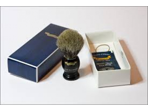 Magnifique blaireau en acétate de couleur écaille. Garniture en pur blaireau noir, ferme et résistant existe en 3 tailles