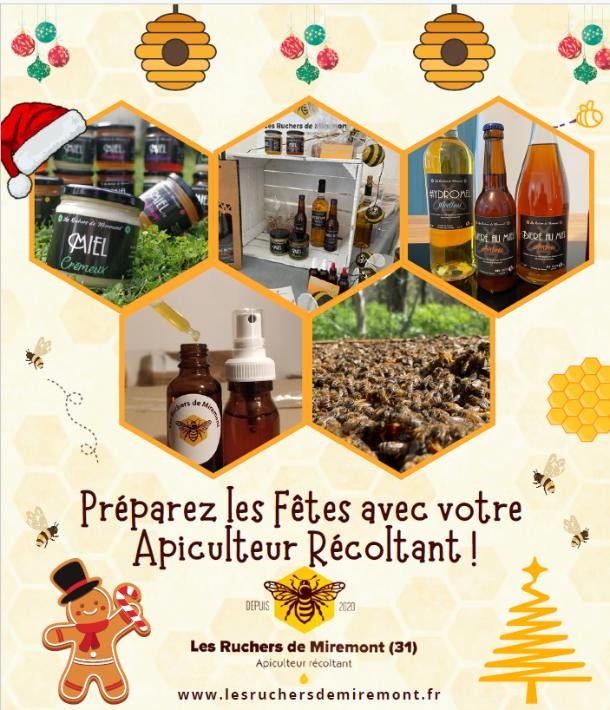 Rendez-vous chez Les Ruchers de Miremont pour composer votre panier garni personnalisé et faire plaisir à vos proches en cette période de festivités. Ensemble, célébrons la douceur des fêtes de fin d'année !