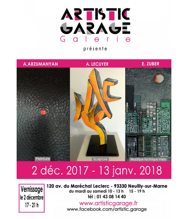 Aykaz ARZUMANYAN (peinture) Ses œuvres sont inimitables, elles procurent bonheur et joie. Selon la position des rayons du soleil le relief de chaque touche de couleur dépose son ombre sur la touche voisine et se joue de ses nuances. Alain LECUYER (sculpture en verre) "fusing" est la technique employée pour la réalisation de ses sculptures. Composées de couches de verre avec inclusions d'oxydes, de pigments. Estelle ZUBER (mosaïque contemporaine technique mixte)Les paysages urbains en composants électroniques, pâte de verre ardoise, câbles électriques, pierres précieuses
