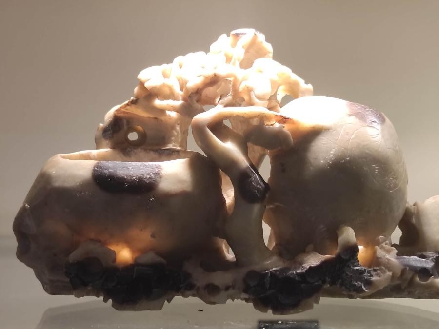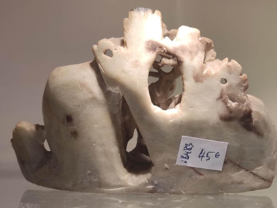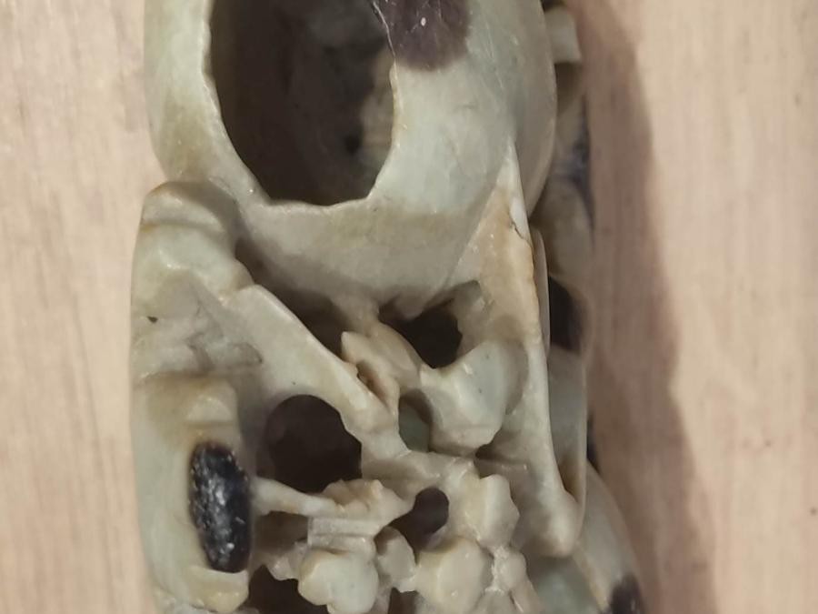 sculpture figurant un arbre en stéatite mouchettée, sculptée à la main (pierre de lard)