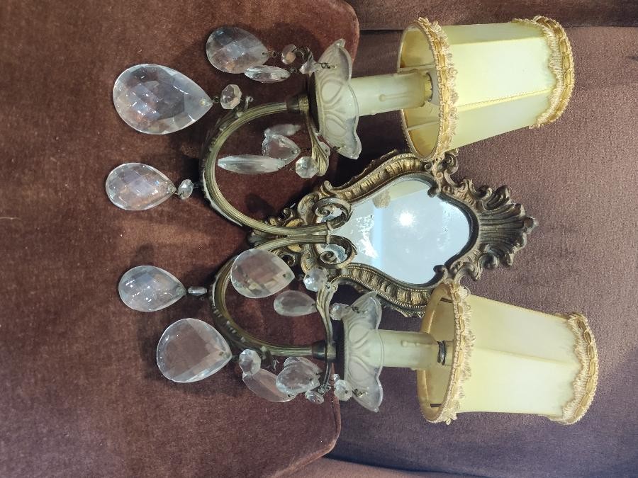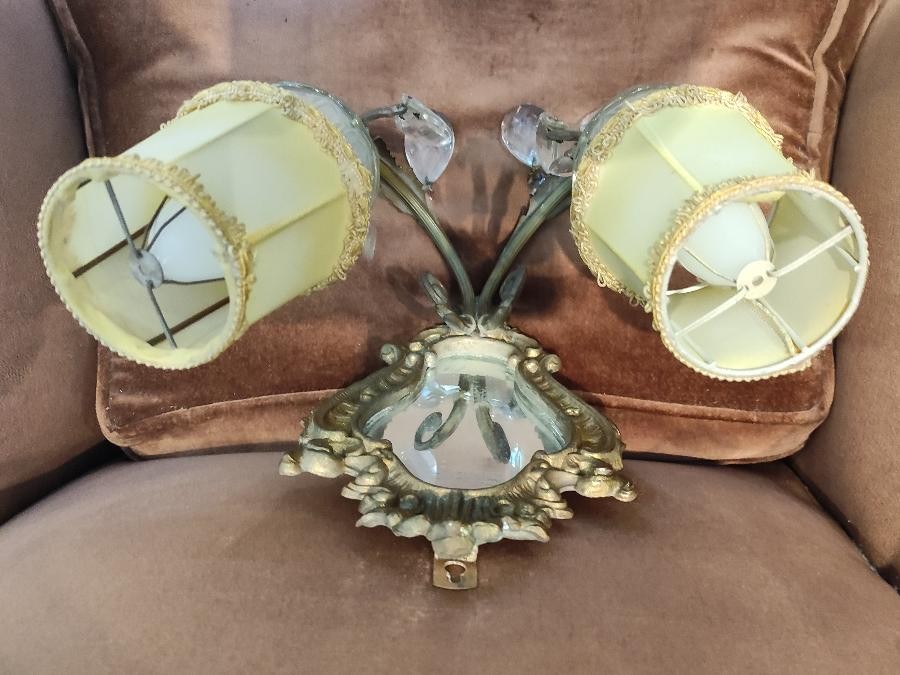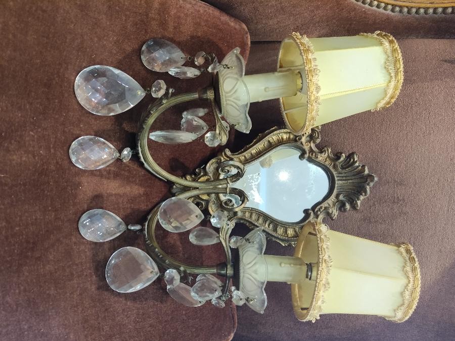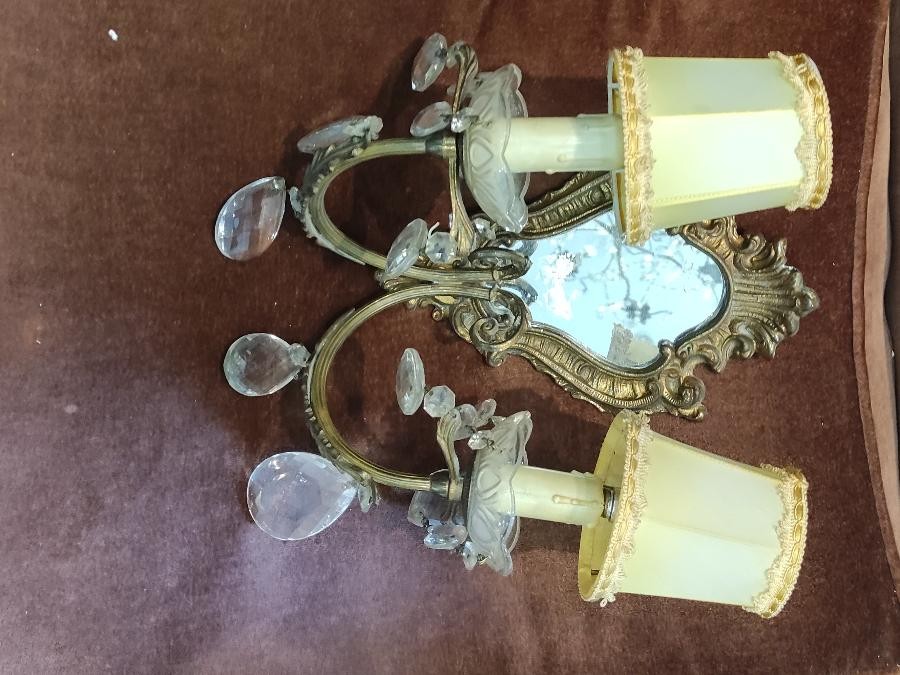 Paire d'appliques en bronze et laiton avec grand miroir ovale, de style Louis XV
