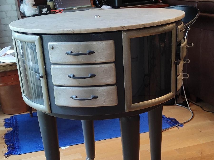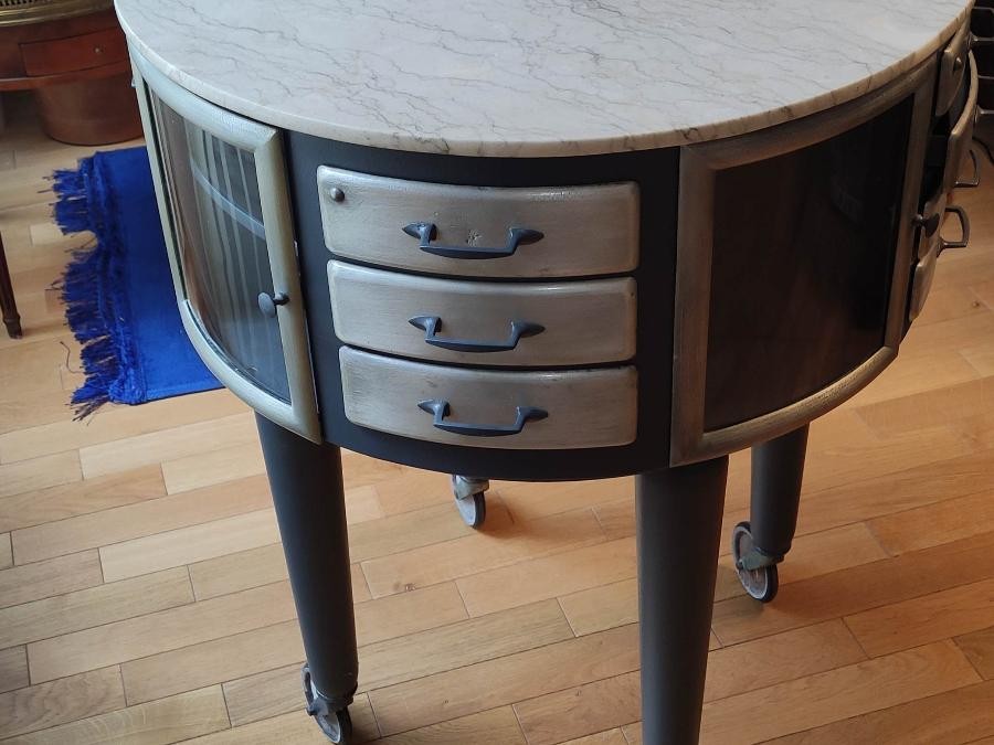 cette table équipait les dentistes et permettait le rangement et la pose des outils et accessoires nécéssaires aux soins