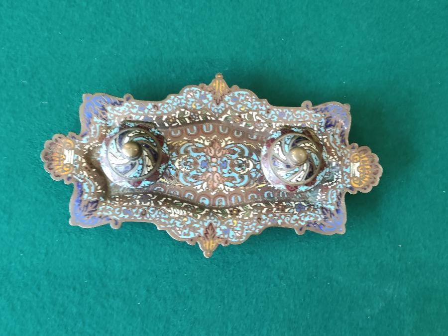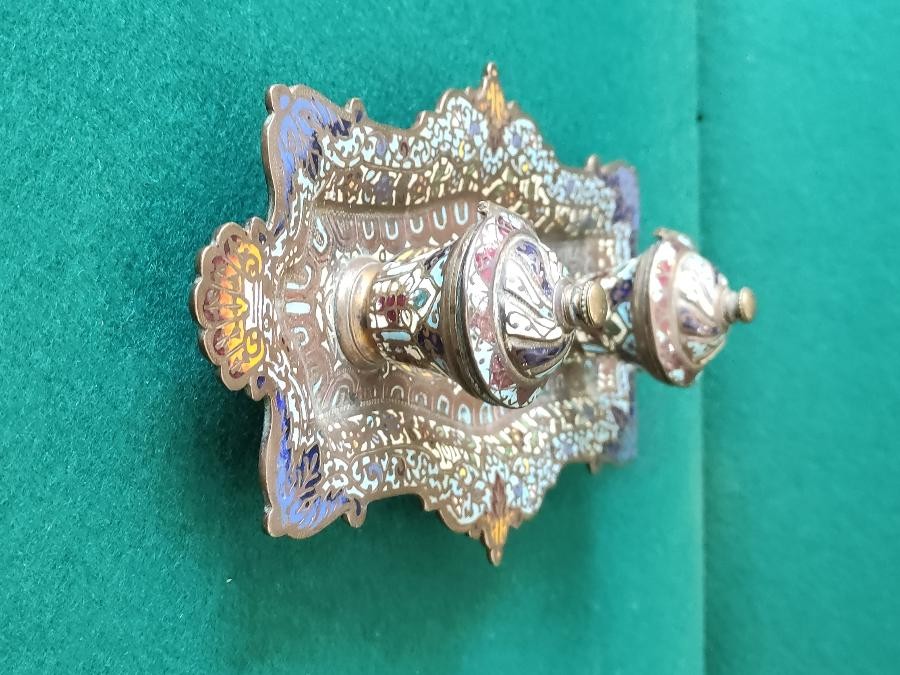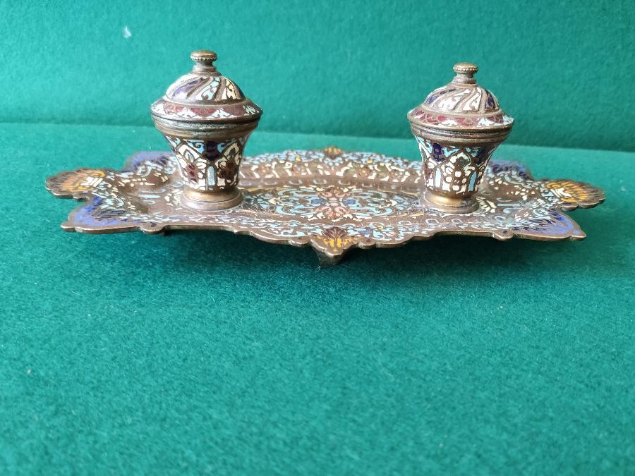 Encrier en bronze orné d'émaux cloisonnés