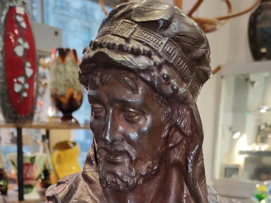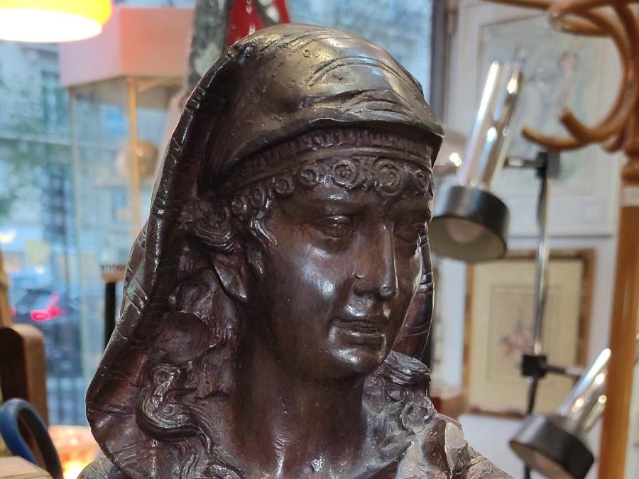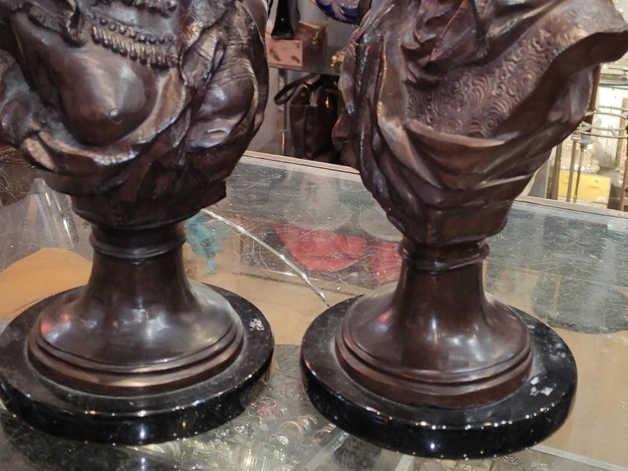 Paire de bustes en bronze à patine brune, style orientaliste, sur base en onyx noir