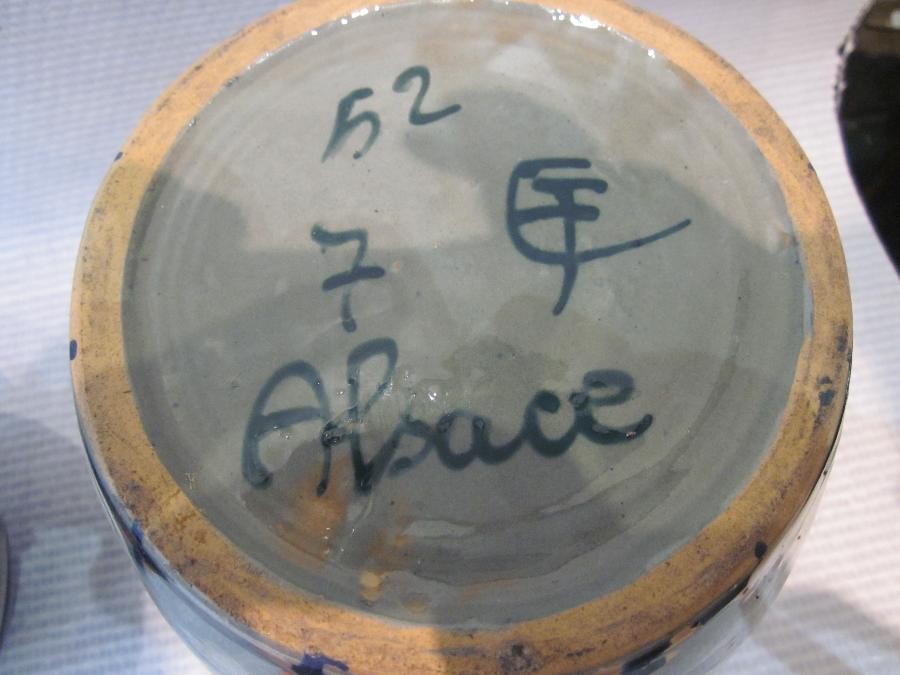 Paire de vases en céramique d'époque Art Décosignés "Alasce" et du logo de Léon Echlingercouleur grise et bleu de Sèvres, motifs traditionnels spirale