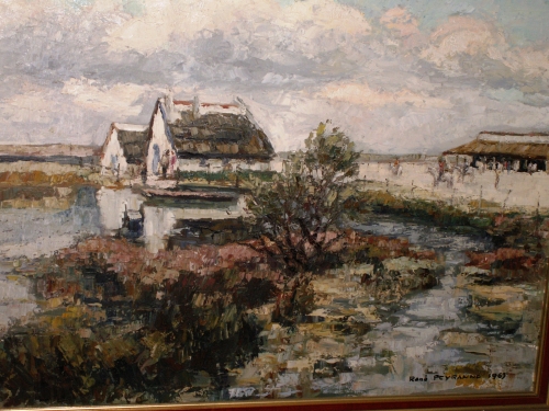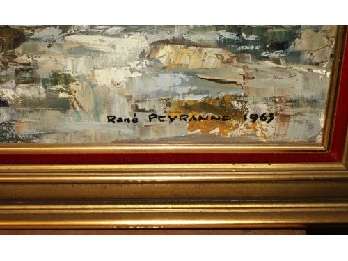 grande peinture encadrée figurant un paysage de camarge signé : René Peyranne dimensions approx : 110 x 80 cm, cadre compris bon état de conservation